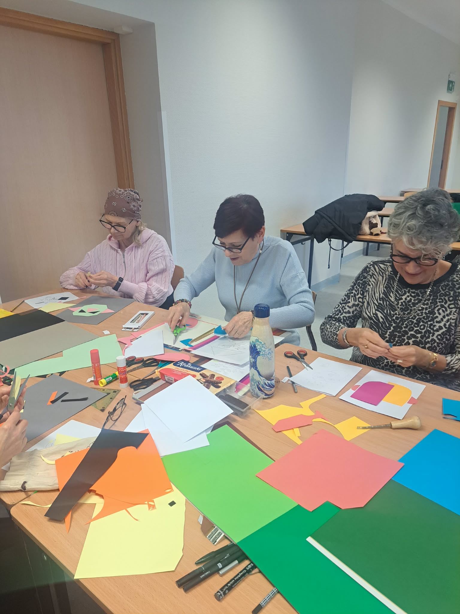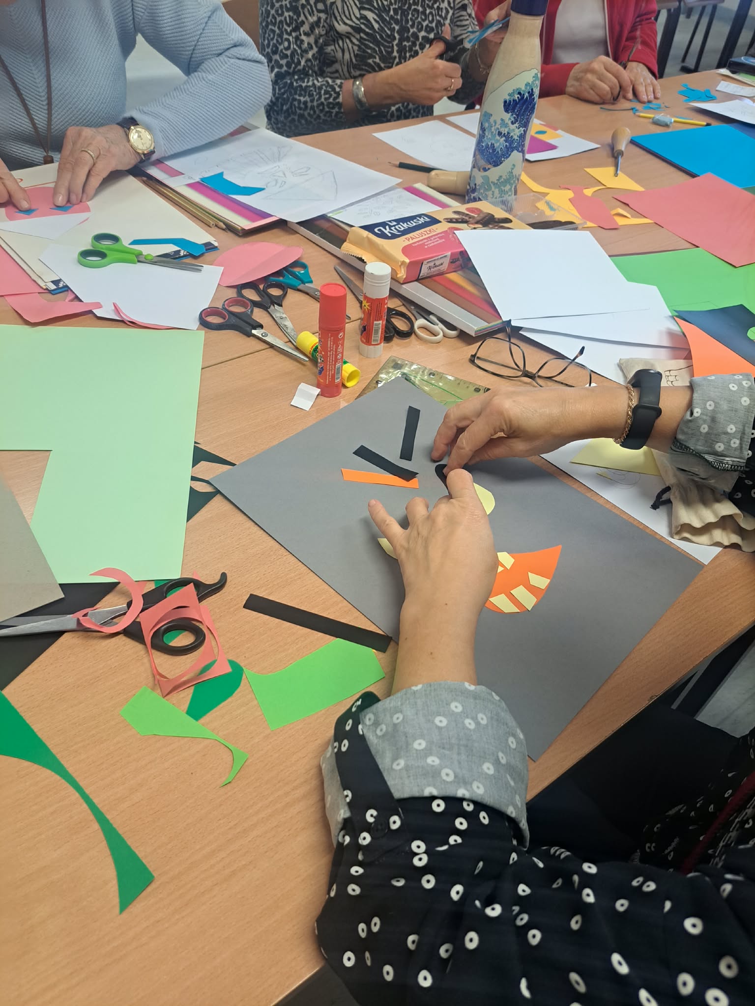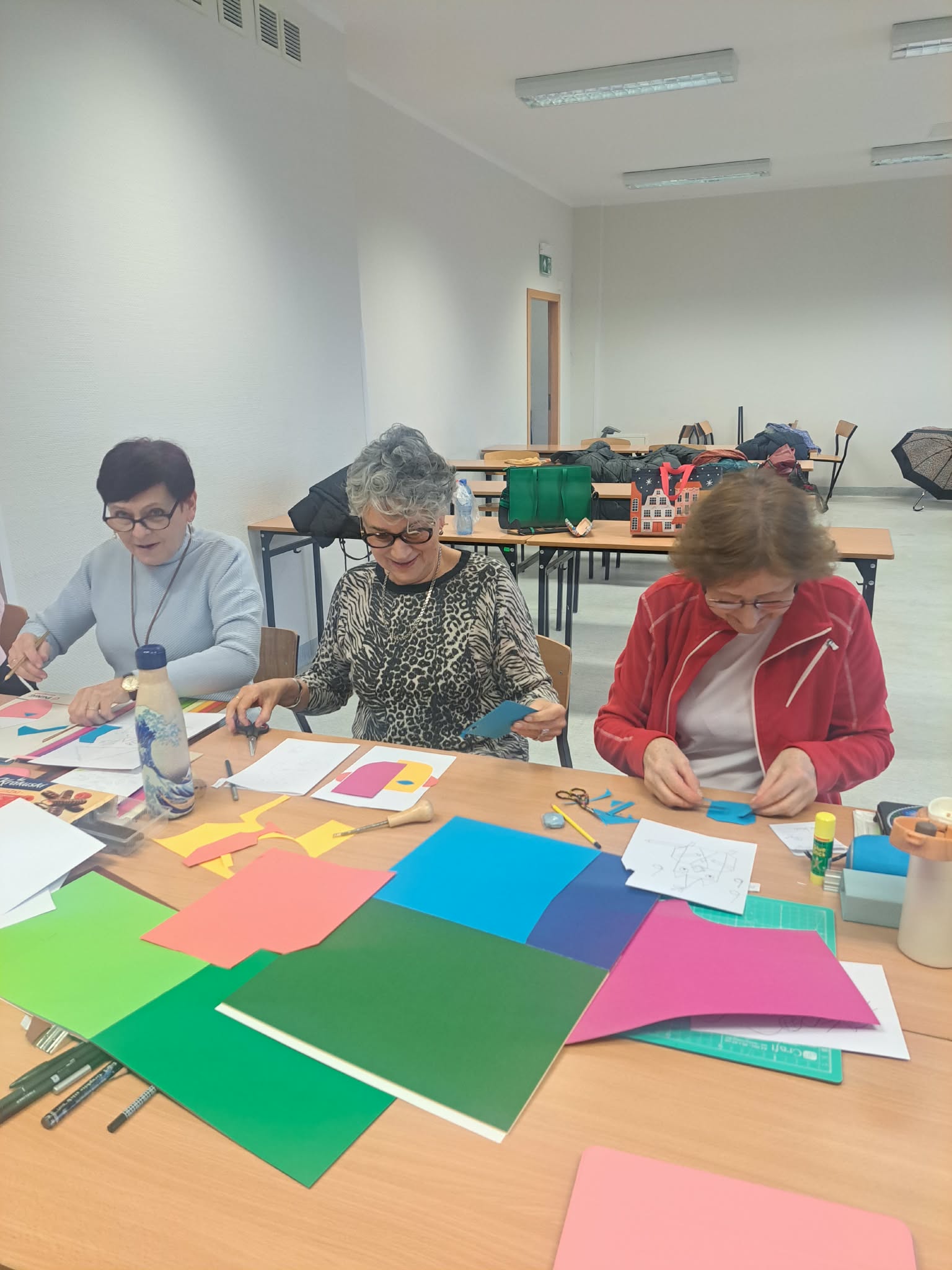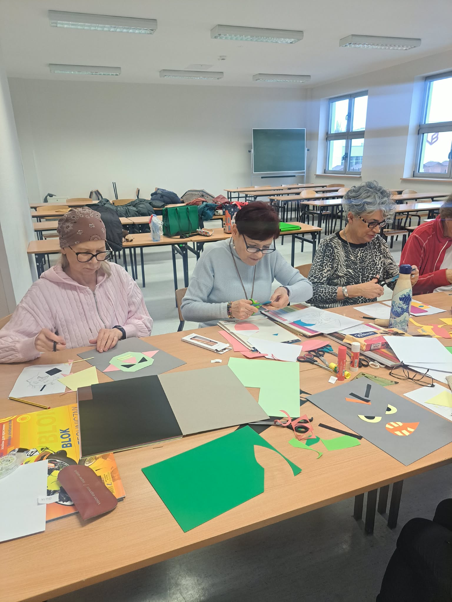 Podczas warsztatów uczestniczki z ogromnym zaangażowaniem oddają się twórczej pracy — rysują, malują, wyklejają oraz eksperymentują z różnorodnymi technikami plastycznymi. Każde spotkanie to nie tylko okazja do rozwijania zdolności artystycznych, ale również przestrzeń do rozmów, dzielenia się doświadczeniami i wzajemnej inspiracji.