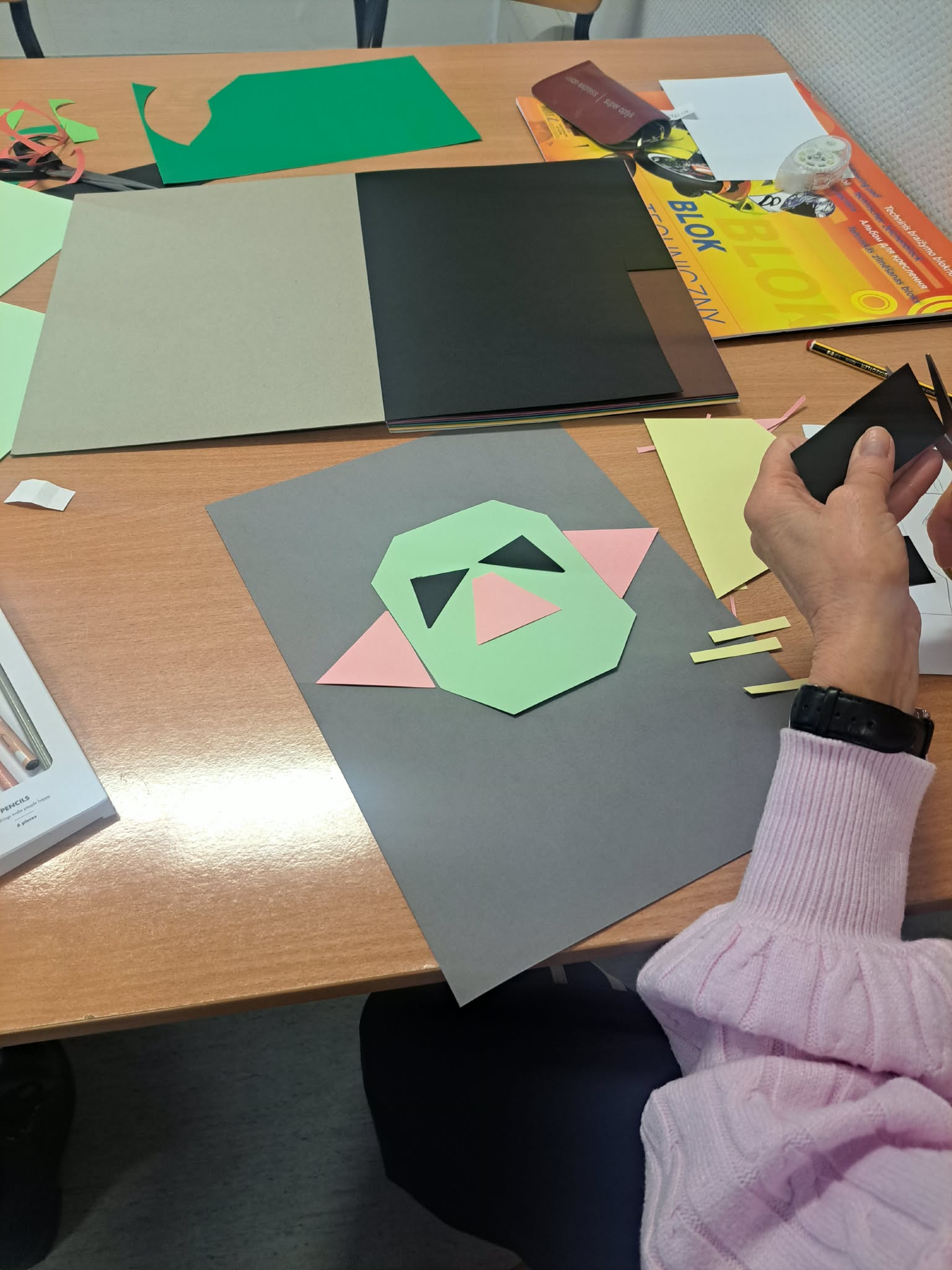 Za nami kolejne inspirujące spotkanie w ramach zajęć plastycznych dla naszych słuchaczek, prowadzonych przez studentkę Wydział Sztuk Projektowych Politechniki Bydgoskiej — p. Julię, która jest także przewodniczącą koła pstRYK działającego na kierunku Komunikacja Wizualna.